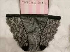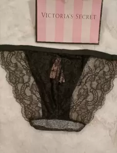 Bikini encaje negro Victoria's Secret. Luce muy sexy con esta hermosa panty Victoria's Secret!! Original y nueva!! Diseño en terciopelo brillante muy suave, encaje en parte trasera!! Talla L!! Consulta mi clóset para más tallas y modelos!! Con gusto resuelvo cualquier duda!!