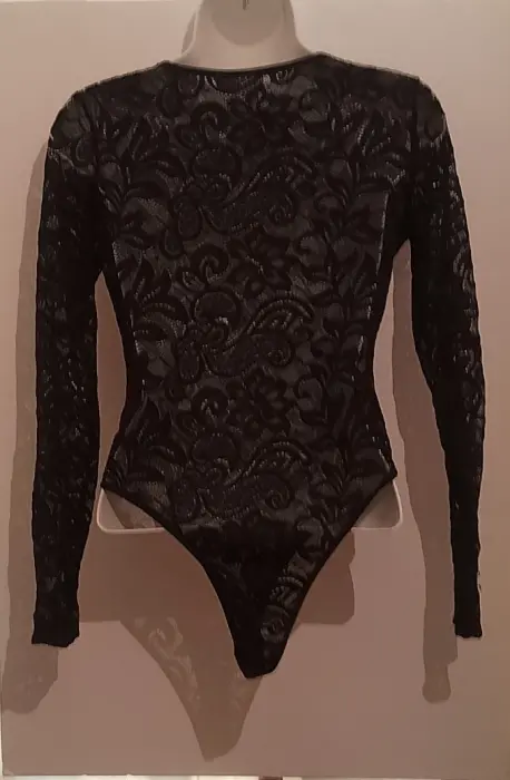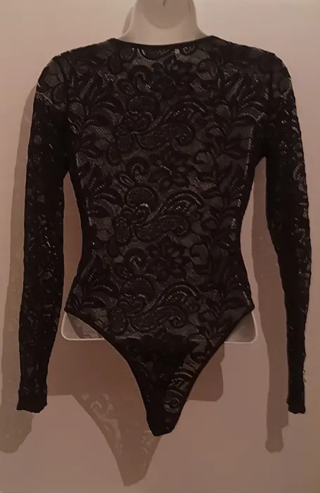 Body negro semitransparente. Bonito body negro, semitransparente, talla S-M, en buen estado, solo tiene algunos detalles derivados del uso ( algunos hilos un poco jalados), pero en general tiene buena vida útil aún