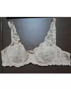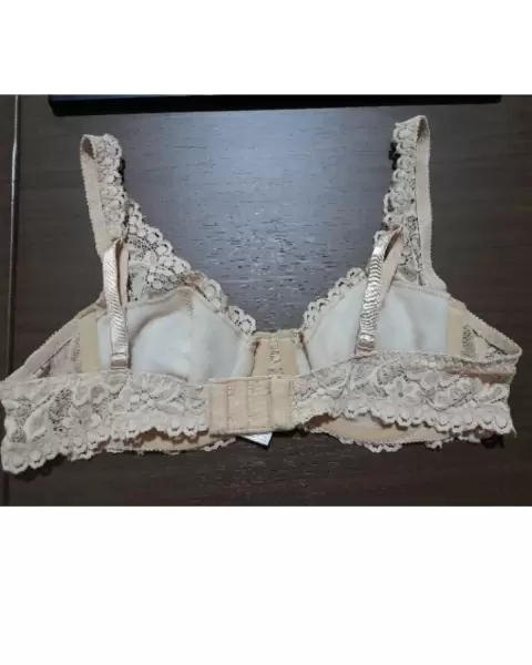 Coqueto bra Ilusion modelo balconette, de encaje color beige y moño al frente, en talla 36B. El único detalle es que uno de los tirantes esta ligeramente jalado por el ajuste, visible en las fotos.Si te gusta más de una prenda de mi closet, escribeme y te armo un paquete para mejorarte el precio 😉