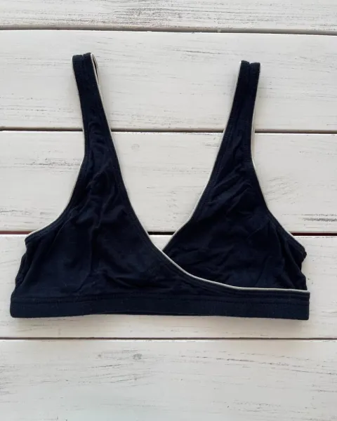Bra sin varilla negro Elita. Talla: 32, sin varillas, tiene orillas beige, mide: 25 cm, es muy suave hecho de bambú y spandex.