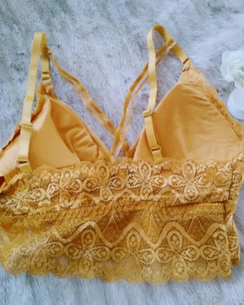 Bralette de Encaje amarillo. Bralette de encaje, Amarillo Oro , CH/MEncaje suaveCopas removiblesEncaje stretchTirantes ajustablesDetalle tipo arnés al frente