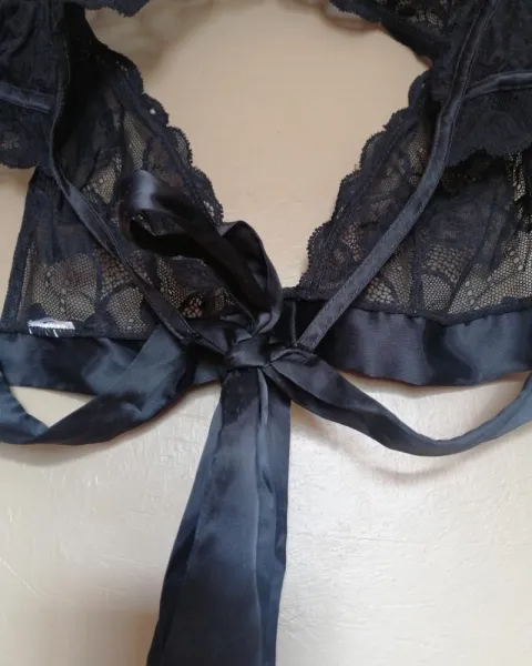 Bralette de encaje Bárbara Mori by Vicky Form. Bralette de encaje negro colección Bárbara Mori by Vicky Form con mangas cortas. Sólo se usó dos veces. No trae la etiqueta porque era muy larga y se la corté.