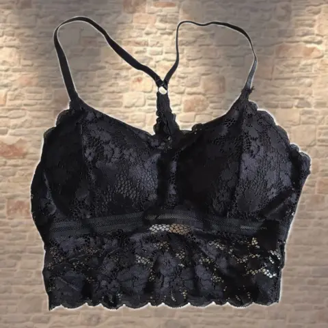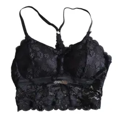 Bralette negro de encaje nuevo. Hermoso bralette negro de encaje sin varillas y con almohadillas incluídas. Muy cómodo para hacer ejercicio o cualquier actividad. Unitalla. 90% nylon y 10% spandex. Nuevo y con etiqueta.Ancho 32 cm.Largo total 26 cm.Copa 17 cm de ancho y 14 cm alto.Si te agrada alguna otra prenda de mi closet, podemos negociar el precio.