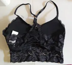 Hermoso bralette negro de encaje sin varillas y con almohadillas incluídas. Muy cómodo para hacer ejercicio o cualquier actividad. Unitalla. 90% nylon y 10% spandex. Nuevo y con etiqueta.Ancho 32 cm.Largo total 26 cm.Copa 17 cm de ancho y 14 cm alto.Si te agrada alguna otra prenda de mi closet, podemos negociar el precio.