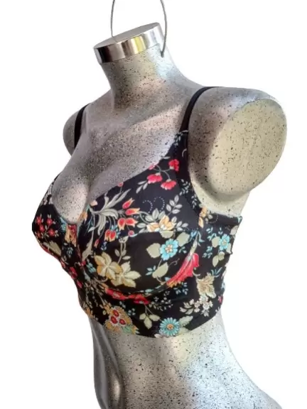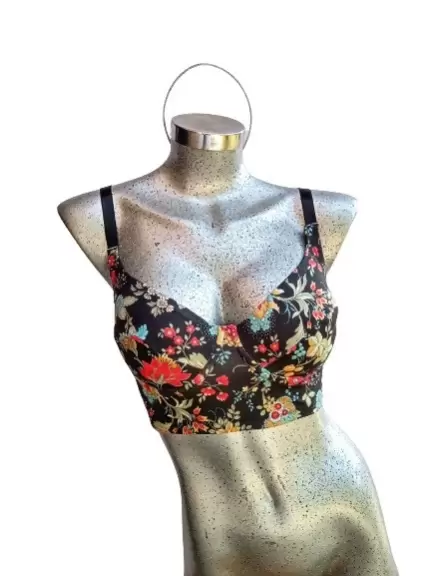 Brasier floreadoCon soporte, tiene varillas en copa, forro completo de Mesh para que no lastimen las costuras y broches en la espaldaLa tela es muy suave y elásticaTirantes gruesos y ajustables. No lastimanTalla 34C