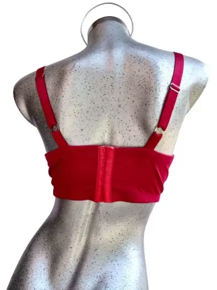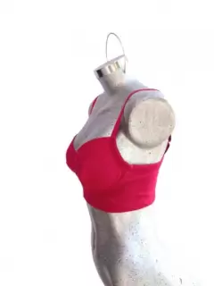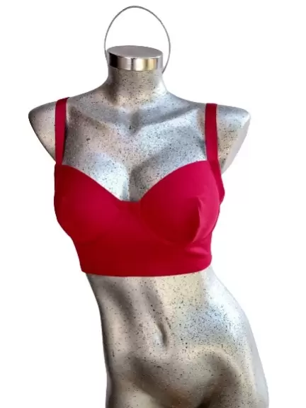 Brasier top rojo. Hecho a manoBrasier con varilla de aro y broches en la espalda, está hecho de tela elástica gruesa, con forro en las copas para que no lastime las costuras, el cuerpo está entero (no tiene costuras) tiene tirantes ajustables