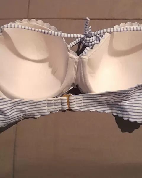 Brasier traje de baño. Brasier de traje de baño Victoria's Secrets, estampado el fondo blanco con flores azules, lo puedes usar perfecto con un short o un bikini