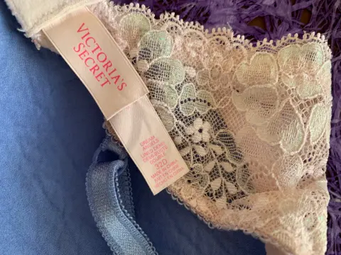 Brassier en tela y encaje. 🩵Talla 32D Victoria's secret 🎀🤍Sin push🩵Encaje en tornasol bello, bello🤍Nuevo sin etiqueta 🏷️ 🩵Tirantes ajustables ✨Publico en más lugares y se puede vender sin previo aviso✨Hago envíos los sábados antes de las 11am