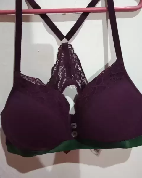 Brassier tirantes cruzados. Brassier color morado, tirantes cruzados con encaje, son varilla, buen soporte que suple la.varilla