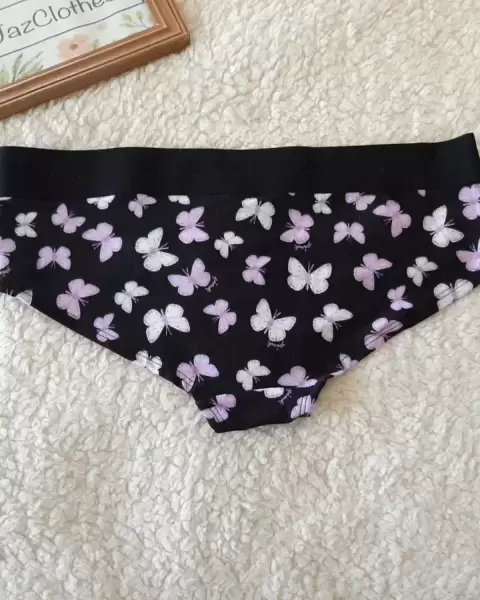Hermoso cachetero Victoria's Secret!! Original y nuevo con etiquetas!! Diseño súper lindo con maripositas en tonos lila y rosita, fondo negro con elástico en cadera!! Muy cómodo y suave de algodón!! Para más modelos y tallas visita mi clóset!! Con gusto resuelvo cualquier duda!!