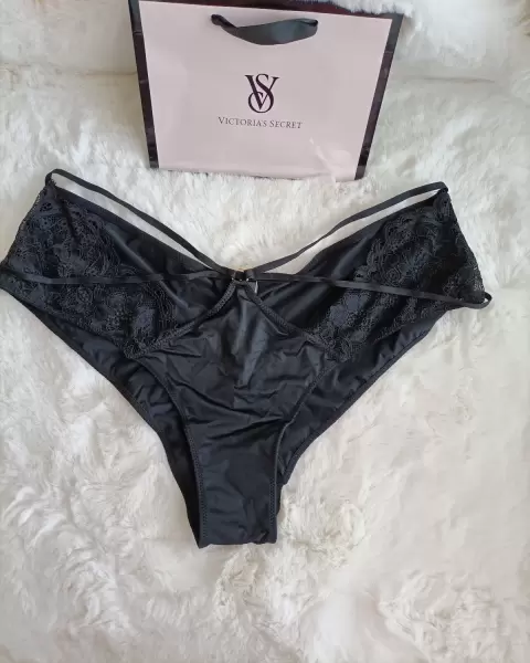 Luce increíblemente sexy con este hermoso cheeky Victoria's Secret!! Original y nueva con etiquetas!! Tejidosúper suave y cómodo con delicada inserción de encaje en costados y tiras frontales q le dan un toque único espectacular, en tono negro intenso !! Disponible talla XL !! Para más modelos de esta marca consulta mi clóset!! Con gusto resuelvo cualquier duda!!