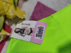 •Te interesa? Escucho ofertas•Deseas varias prendas? armo tu paqueteConjunto de lencería Amarillo fosfo, tela rib, con stretch (licra). Tanga con puente de algodón. Top, copas preformadas, tirantes cruzados en la espalda. Unitalla.