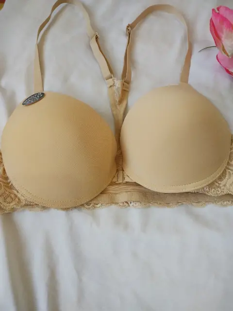 Hermoso coordinado de brassier color beige, con push up , con broche en la parte de enfrente, espalda reforzada con doble tela, panty talla L , talla brassier 36 b