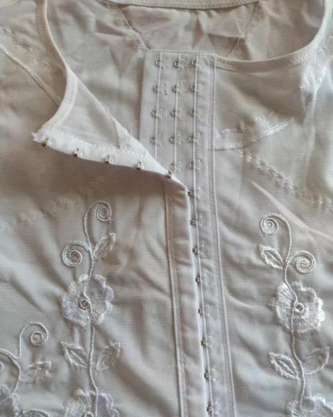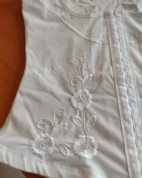 Linda faja corsets en color blanco con unos estampados de unas flores bordadas está súper lindo y sexi tiene unos tirantes gruesos que no marcan en la parte de enfrente tiene los broches fácil de abrochar está super padre.