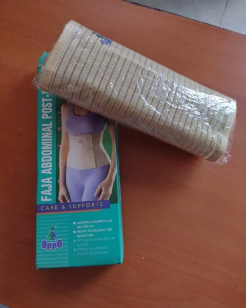 Faja abdominal post-parto. Excelente faja abdominal post-parto en color piel ayuda a aliviar la tención en los músculos, ligamentos y articulaciones causada por un abdomen caído.puede usarse también de forma postoperatoria para fijar apósitos quirúrgicos.