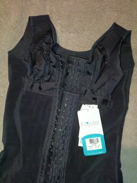 FAJA COMPLETA DE ALTA COMPRESIÓN. Faja colombiana completa de alta compresión MARCA FAJATE 3 niveles de ajuste en busto como en abdomen orificio perineal, forma reloj de arenaNUEVA TALLA M Color NEGRA