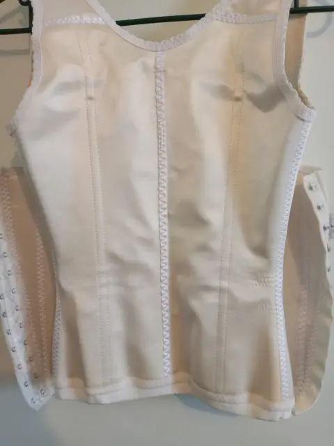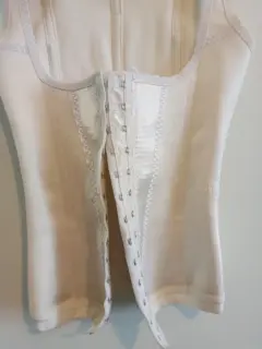Faja de Algodón tipo corsette. Faja tipo corsette, de tirantes, con dos posiciones para ajustar medida. Forro de algodón en la parte interior. Ayuda a moldear y a disminuir el talle, parte alta y baja de la espalda y vientre. Viene con su empaque original. Indica talla 30.