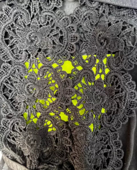 El body es escotado en V con encaje grueso y arnés a la garganta en V es de malla transparente.Maraca: Love (viene con etiqueta)Talla: Unitalla M/L ( tengo varias piezas disponibles)Composición: 85% poliéster y 15% elástico Precio: $350