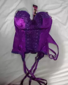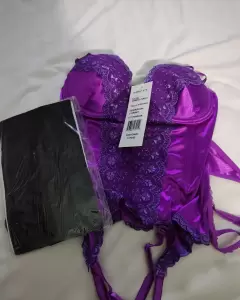 Hermoso Corset Marca Vicky Form, Talla Mediana, NUEVO, con etiqueta, incluye 3 prendas, Corset, Tanga y Medias color negro.
