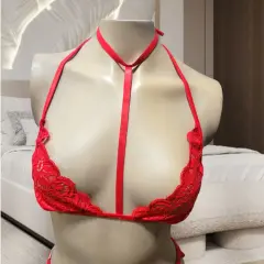 Liguero de 2-Piezas Red Sky, talla EG, color rojo sólido, contiene 1. Brassier con tiras al hombro/cuello y 1. Liguero ajustable de encaje, tirantes y listones ajustables, agarraderas para medias con cierre de precion, hecho de algodón y poliéster, la prenda que necesitas en tu coleccion, nuevo a estrenar con etiqueta en buen estado cosmetico.