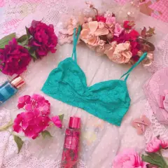 Lindo y bello bralette de encaje color verde esmeralda, con tirantes ajustables y banda ancha Para mayor ajuste y confort, sin detalles ni roturas, queda a talla indicada S pero la etiqueta está en M. Ofertas justas. Por favor checar bien las fotos para evitar devolución o calificación no concordante a mi descripción. Envíos los lunes ❤️