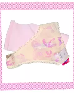Lote de 2-piezas Panty & Tanga, en color rosa y floral, talla chica/mediana, el panty cubre total y tiene graficos, la tanga es de tela respirable, nuevos con etiqueta.
