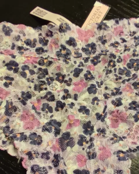 Pantaleta cachetera Victoria's Secret talla Chica. Pantaleta de encaje de algodon suave, con estampado de Flores, Corte Bajo, elastico super suave
