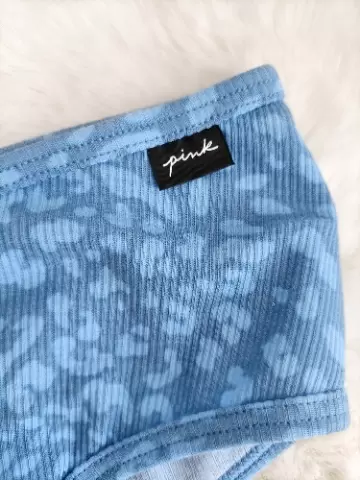 Panti azul animal print PINK. Hermoso bikini PINK!! Original y nuevo!!Tejido súper suave y cómodo en algodón simplemente hermoso!! Diseño súper lindo animal print en tonos azules!!Talla M!! Para más tallas y modelos visita mi clóset!! Con gusto resuelvo cualquier duda!!