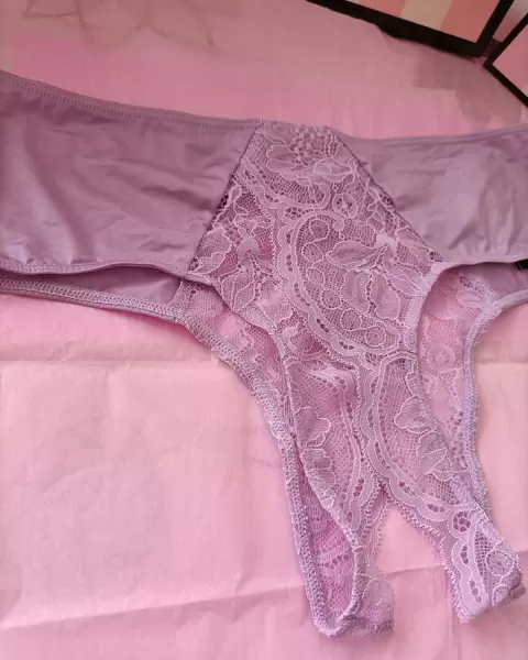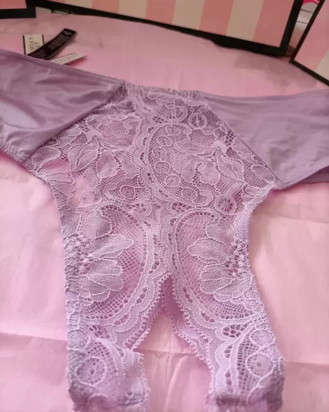 Panty Victoria's Secret lila. Hermosa panty Victoria's Secret!! Original y nueva con etiquetas!! Corte Cheeky muy sexy!! Con abertura de encaje en parte baja!! Disponible talla M!! Hey!! Visita mi clóset para más tallas y modelos!! Con gusto resuelvo cualquier duda!!