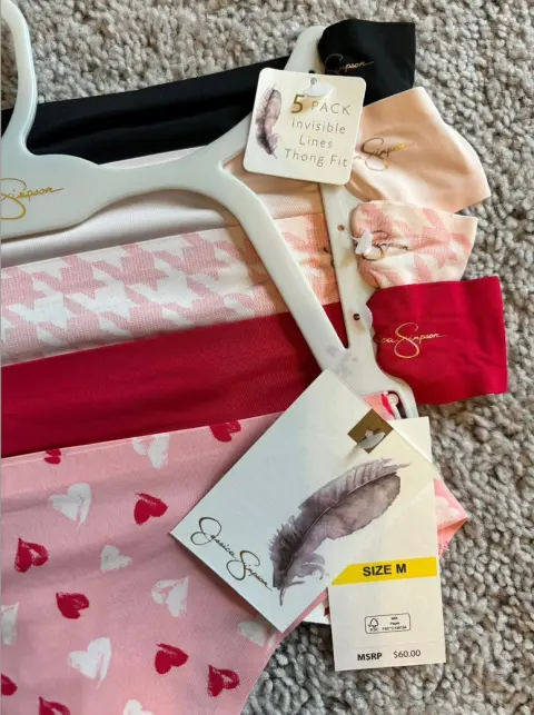 Paquete de tangas JESSICA SIMPSON. Paquete de 5 tangas talla M marca Jessica Simpson. Son muy delgaditas para que no se marquen en la ropa. 90% nylon 10% spandex. Tela suave y elástica.Nuevas 🏷️Productos importados 🇺🇸Escucho ofertas razonables 🙏🏻💲