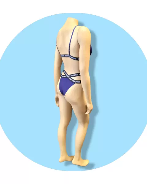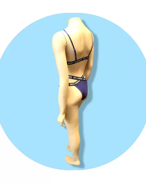 Rose Girl Sexy Goddes 2-Pcs Set, tamaño pequeño / mediano, color azul con correas elásticas estampadas en negro que dice Sexy Goddes, el sujetador es acolchado claro, estilo deslizante, elástico sexy cruzado, tirantes ajustables para los hombros, hechos de nylon y mezcla de spandex, nuevos sin etiqueta como mercancía de cierre en buenas condiciones.