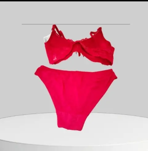 Set de 2-Piezas Panty y Brassier. Set de 2-Piezas Panty y Brassier de Pick Pink, talla 42(XXL), color Rojo passion, con encajes de acento en Brassier y moño coquette en el Panty, hechos de licra y algodón, nuevos a estrenar con etiqueta en buen estado cosmetico.