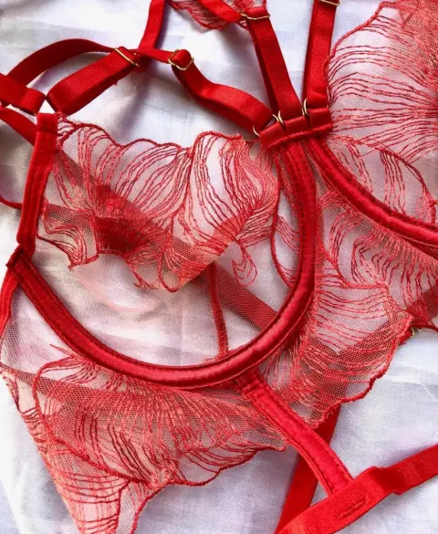 Set de lencería rojo. Set de lencería rojo totalmente nuevo talla S-M, todos los tirantes son ajustable , la tela es tipo red transparente roja con flores/hojas rojas de encaje
