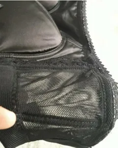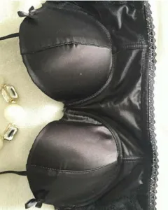 Sexy bra negro brilloso 32B. El corte queda por debajo de las boobs, y tiene encaje en la parte de abajo. Los tirantes son desprendibles por si lo quieres usar strapless. Tiene 2 pequeños moños en cada copa que se ven divinos. La forma de abrocharlo permite estirar gracias a sus 3 niveles de elasticidad.