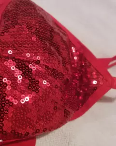 Sexy diseño en lentejuela brillante sin varillas, ideal para busto pequeño, medio u operado, tirantes graduables fijos y elásticos decorativos en base que genera soporte.
