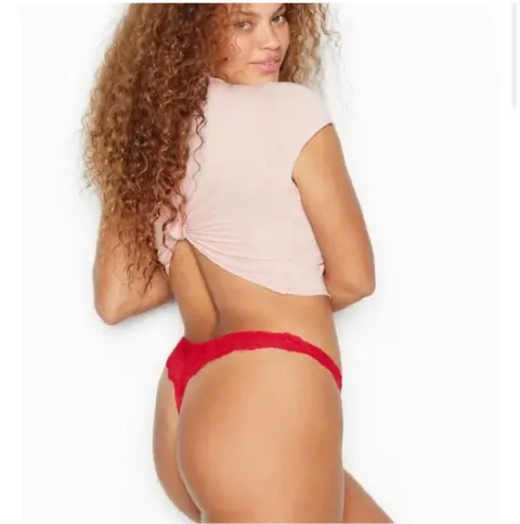 Tanga encaje roja Victoria's Secret. Luce increíblemente sexy con esta hermosa tanga tipo cachetero Victoria's Secret!! Original y nueva!!Encaje súper suave y cómodo simplemente hermosa!! Línea Dream Angels Diseño en encaje floral tono rojo intenso( queda igual a la modelo)Talla S!! Para más tallas y modelos visita mi clóset!! Con gusto resuelvo cualquier duda