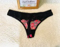 Tanga negra flores Victoria's Secret