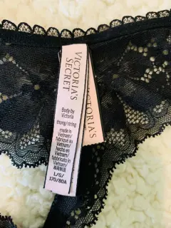Luce increíblemente hermosa con esta hermosa tanga Victoria's Secret!! Original y nueva!!Tejido muy suave atrás sexy inserción de encaje en tono negro rayitas diseño floreado le da un toque muy lindo y sexy simplemente hermoso!!Talla L!! Para más tallas y modelos visita mi clóset!! Con gusto resuelvo cualquier duda!!