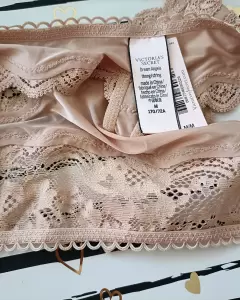 Hermosa tanga Victoria's Secret!!Original y nueva con etiquetas!!Hermoso diseño con encaje en orillas muy suave súper sexy!!Disponible talla L!!Color nude/ piel !!Hey!! Para más tallas y modelos te invito a mi clóset con gusto resuelvo cualquier duda!!