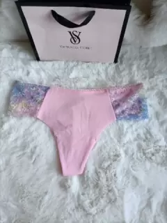 Tanga rosa Victoria's Secret. Luce increíblemente sexy con esta hermosa tanga Victoria's Secret!! Original y nueva!!Tejido súper suave y cómodo corte láser no se marca inserción de encaje en costados simplemente hermosa!! Diseño súper lindo en tono rosa encaje multicolor!!Talla M sin problema puede quedar a talla S!! Para más tallas y modelos visita mi clóset!! Con gusto resuelvo cualquier duda!!