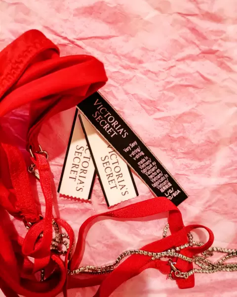 Tanga Shinne Victoria's Secret. Hermosa tanga de hilo Victoria's Secret!!Original y nueva con etiquetas!!Línea Very Sexy V-string!!Hermoso diseño con cristales en cadenitas súper sexy son desmonbles tienen broche y van de la parte delantera hacia atrás!!Disponible talla L!!Color rojo intenso!!Hey!! Para más tallas y modelos te invito a mi clóset con gusto resuelvo cualquier duda!!