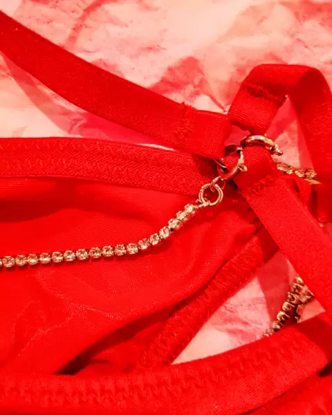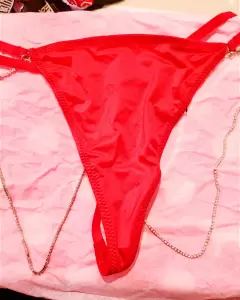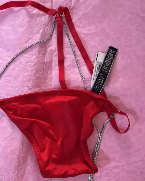 Hermosa tanga de hilo Victoria's Secret!!Original y nueva con etiquetas!!Línea Very Sexy V-string!!Hermoso diseño con cristales en cadenitas súper sexy son desmonbles tienen broche y van de la parte delantera hacia atrás!!Disponible talla L!!Color rojo intenso!!Hey!! Para más tallas y modelos te invito a mi clóset con gusto resuelvo cualquier duda!!