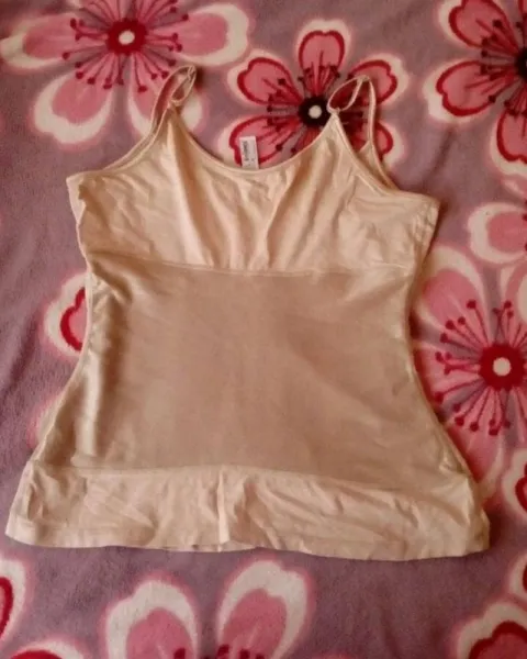 .Top de tirantes ajustables en tono hueso, en la cintura tipo faja, talla grande pero queda mejor a talla mediana. Usala debajo de tus blusas favoritas o como top, es una prenda y ligera, te sentirás super cómoda y segura al lucir naturalmente tu figura