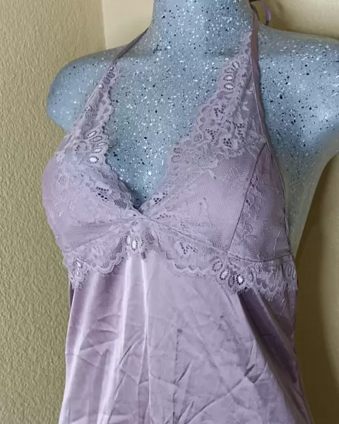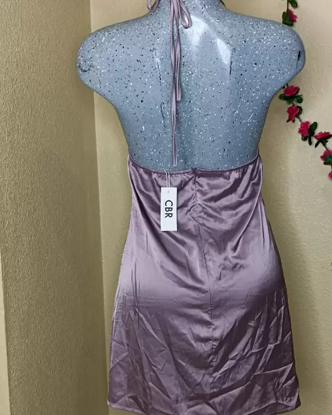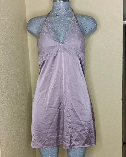 Vestido de satén. Pijama de satén, ropa de dormir. Sexi escote tipo halter, etiqueta dice XL viene reducido a M. No trae esponja. Color rosa bb