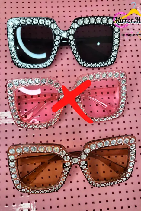 ELIGE ENTRE UN PAR DE LENTES NEGROS O CAFE. SUMULAN QUE TRAEN PIEDRITAS.SE ENVIAN CON PAÑO DE LIMPIEZA Y CUBREPOLVO.
