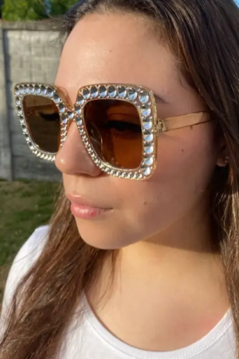 Lentes de Sol Cuadrados. ELIGE ENTRE UN PAR DE LENTES NEGROS O CAFE. SUMULAN QUE TRAEN PIEDRITAS.SE ENVIAN CON PAÑO DE LIMPIEZA Y CUBREPOLVO.