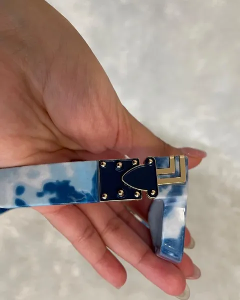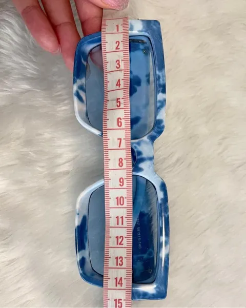 Lentes azul marmoleado cuadrados, nuevos, no los usé porque no me gusta cómo me quedan a mí. Sin detalles. Envío con estuche.