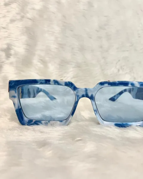 Lentes de sol azules nuevos. Lentes azul marmoleado cuadrados, nuevos, no los usé porque no me gusta cómo me quedan a mí. Sin detalles. Envío con estuche.