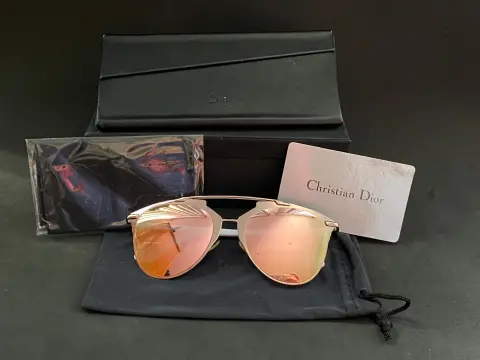 Lentes Dior reflected color oro rosado. Auténticos Lentes Dior Reflected marco color oro rosado lentes color oro rosado de espejo con patas color blanco, usados con algunos detalles de uso, incluyen caja, estuche y paño de limpieza .