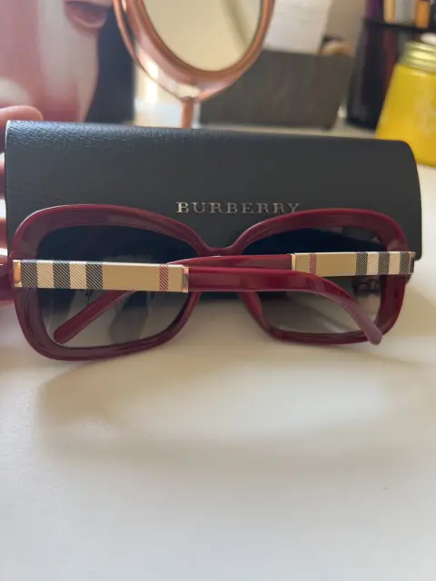 Lentes obscuros BURBERRY. Padrísimos lentes obscuros tamaño mediano, color vino y con diseño de la marca en las patas, sin detalles, lucen espectaculares, incluyen su estuche ..! Gran oportunidad